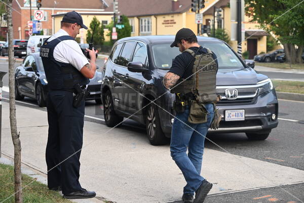 Drivers get pulled over and arrested at traffic stops in Washington DC in Washington, DC, USA, on August 15, 2025. The patrols by the National Guard and other police jurisdictions are part of US President Donald J Trump’s controversial crime reduction plan for the District of Columbia.