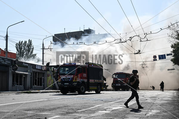 Keywords: Russian-Ukrainian war,Russian aggression,war in Ukraine,war,shelling,aftermath,destruction,SES,firefighters,rescuers,elimination,consequences,drone attack,drone strike,market pavilions,fire truck,smoke