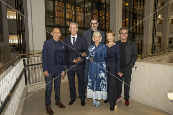 PersonInImage: (left to right) Sir Ben Kinsley, Pierce Brosnan, Richard Osman, Helen Mirren, Celia Imrie and Chris Columbus