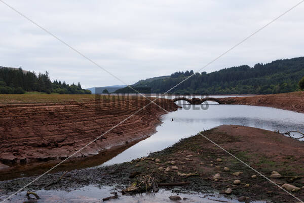 Lower water levels at this reservoir have uncovered an old bridge 'Pont Ar Daf,' which was in use before the reservoirs constuction in the 1920's. It's usually underwater, and only appears in lower water levels.