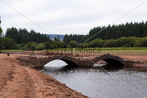 Lower water levels at this reservoir have uncovered an old bridge 'Pont Ar Daf,' which was in use before the reservoirs constuction in the 1920's. It's usually underwater, and only appears in lower water levels.