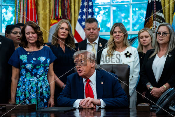 United States President Donald J Trump makes remarks after signing a proclamation on the 4 year Anniversary of the Abbey Gate Bombing in the Oval Office of the White House in Washington, DC, USA, on Monday, August 25, 2025. Trump is meeting with relatives of the thirteen US military members killed during the US withdrawal from Afghanistan in 2021.