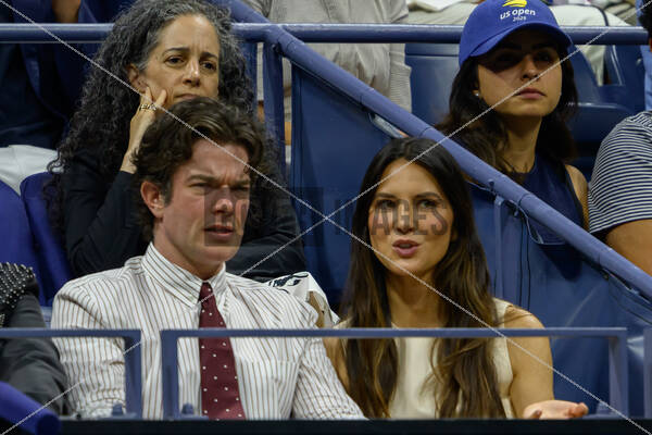 Comedian John Mulaney and his wife and actress Oliva Munn attend the 2025 U.S. Open Tennis Championships at the USTA Billie Jean King National Tennis Center in Flushing, Queens, New York