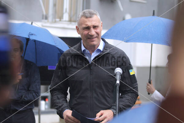 Kyiv city head Vitali Klitschko delivers a speech during the inauguration of the Human Titans Prosthetics Centre at Kyiv City Clinical Hospital N12, Kyiv, Ukraine