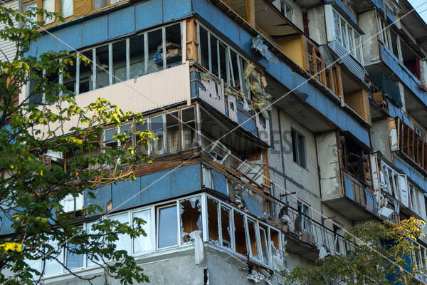 Keywords: Russian-Ukrainian war,Russian aggression,war in Ukraine,war,shelling,missile attack,aftermath,destruction,missile strike,loitering munition attack,Dniprovskyi district,Berezniaky,damage,multi-story residential building,shattered glass,broken windows