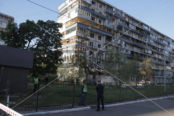 Keywords: loitering munition attack,Dniprovskyi district,Berezniaky,damage,multi-story residential building,shattered glass,broken windows,Russian-Ukrainian war,Russian aggression,war in Ukraine,war,shelling,missile attack,aftermath,destruction,missile strike