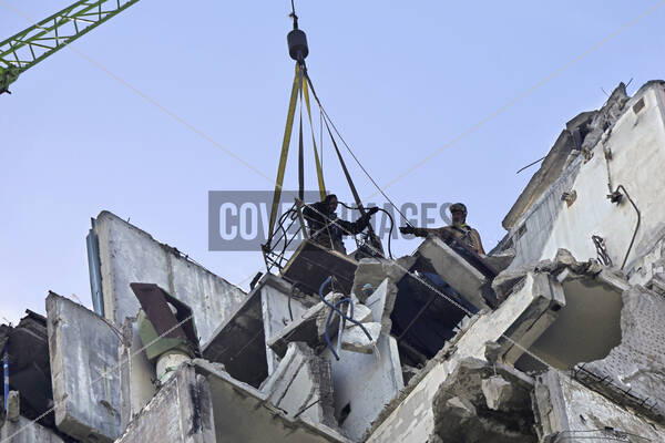Keywords: Kharkiv,Russian-Ukrainian war,Russian aggression,war in Ukraine,war,destroyed buildings,destruction,dismantling work,demolition,buildings,consequences,aftermath,shelling,suspended cradle,crane
