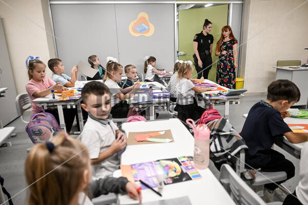 Keywords: Ukraine conflict,Russian invasion,Ukraine war,war,conflict,Russia-Ukraine war,childhood,education,school,underground,front line,Balabyne,Zaporizhzhia region,art,classroom,lesson,student,teacher,police
