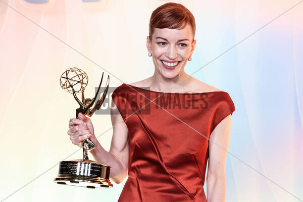 PersonInImage: Britt Lower, winner of the Lead Actress in a Drama Series award for 'Severance' wearing custom Calvin Klein