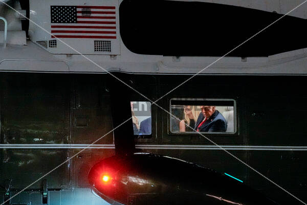 United States President Donald J Trump aboard Marine One as it approaches the South Lawn of the White House in Washington, DC, US, on Thursday, Sept. 18, 2025. Trump said US broadcast networks should face scrutiny over their licenses if they’re too critical of him, in what amounts to his furthest-reaching threat to media freedoms.