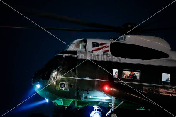 United States President Donald J Trump aboard Marine One as it approaches the South Lawn of the White House in Washington, DC, US, on Thursday, Sept. 18, 2025. Trump said US broadcast networks should face scrutiny over their licenses if they’re too critical of him, in what amounts to his furthest-reaching threat to media freedoms.