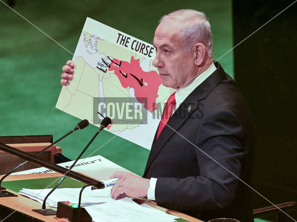 Prime Minister Benyamin Netanyhu of Israel addresses the United Nations General Assembly at United Nations Headquarters in New York, New York, USA