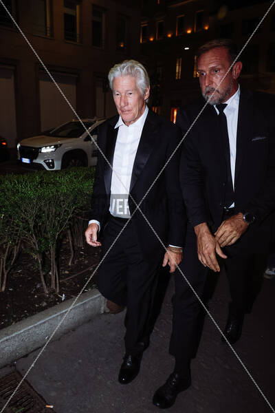 Headline: Richard Gere spotted arriving at Armani Hotel during Milan Women's Fashion Week