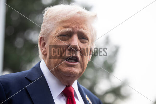 United States President Donald J Trump speaks to reporters on the South Lawn of the White House in Washington, DC, USA, prior to boarding Marine One to fly to deliver remarks to an unusual gathering of senior military leaders at the Marine Base in Quantico, Virginia on September 30, 2025.