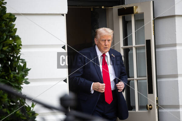 United States President Donald J Trump emerges from the the White House in Washington, DC, USA, prior to boarding Marine One to deliver remarks to an unusual gathering of senior military leaders at the Marine Base in Quantico, Virginia on September 30, 2025.