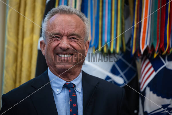 United States Health and Human Services Secretary Robert F. Kennedy Jr. looks on as US President Donald J Trump announces a drug-pricing deal with Pfizer in the Oval Office of the White House in Washington, DC, USA, September 30, 2025. Looking on from left is US Secretary of Health and Human Services Robert F. Kennedy, Jr.