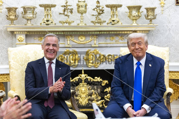 United States President Donald J Trump, right, meets with Prime Minister Mark Carney of Canada in the Oval Office of the White House in Washington, DC, USA, 07 October 2025. The two are expected to discuss the Trump administration’s tariffs on Canadian steel, lumber and automobiles, along with other goods.