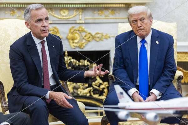 United States President Donald J Trump, right, meets with Prime Minister Mark Carney of Canada in the Oval Office of the White House in Washington, DC, USA, 07 October 2025. The two are expected to discuss the Trump administration’s tariffs on Canadian steel, lumber and automobiles, along with other goods.
