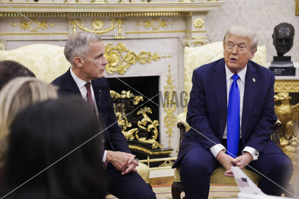 United States President Donald J Trump, right, meets with Prime Minister Mark Carney of Canada in the Oval Office of the White House in Washington, DC, USA, 07 October 2025. The two are expected to discuss the Trump administration’s tariffs on Canadian steel, lumber and automobiles, along with other goods.