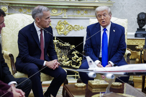 United States President Donald J Trump, right, meets with Prime Minister Mark Carney of Canada in the Oval Office of the White House in Washington, DC, USA, 07 October 2025. The two are expected to discuss the Trump administration’s tariffs on Canadian steel, lumber and automobiles, along with other goods.
