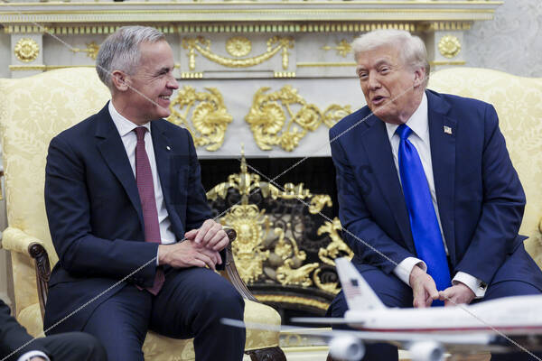 United States President Donald J Trump, right, meets with Prime Minister Mark Carney of Canada in the Oval Office of the White House in Washington, DC, USA, 07 October 2025. The two are expected to discuss the Trump administration’s tariffs on Canadian steel, lumber and automobiles, along with other goods.