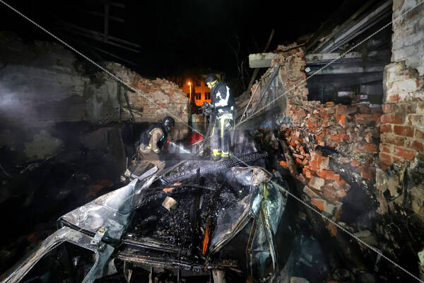 Rescuers work to extinguish a fire caused by a Russian glide bomb strike on the territory of a city hospital, Kharkiv, Ukraine, on October 13, 2025