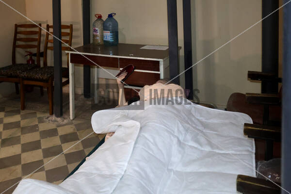 A patient takes shelter in the basement of a city hospital struck by a Russian glide bomb in Kharkiv, Ukraine, on October 13, 2025
