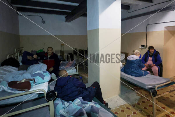 Patients take shelter in the basement of a city hospital struck by a Russian glide bomb in Kharkiv, Ukraine, on October 13, 2025