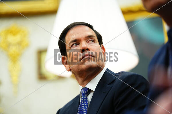 United States Secretary of State Marco Rubio looks on as US President Donald J Trump meets Mark Rutte, Secretary General of the North Atlantic Treaty Organization (NATO) in the Oval Office of the White House in Washington, DC, USA, on Wednesday, October 22, 2025. The leaders are meeting to discuss continuing support for Ukraine.