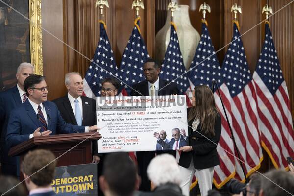 Speaker of the United States House of Representatives Mike Johnson (Republican of Louisiana) conducts a press conference in the US Capitol in Washington, DC, USA, on Thursday, October 28, 2025.Speaker Johnson is marking the 28th day of the US Government shutdown .