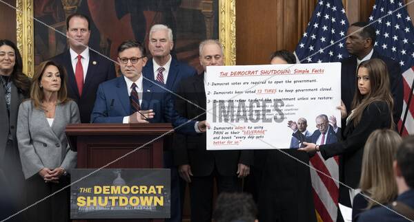 Speaker of the United States House of Representatives Mike Johnson (Republican of Louisiana) conducts a press conference in the US Capitol in Washington, DC, USA, on Thursday, October 28, 2025.Speaker Johnson is marking the 28th day of the US Government shutdown .