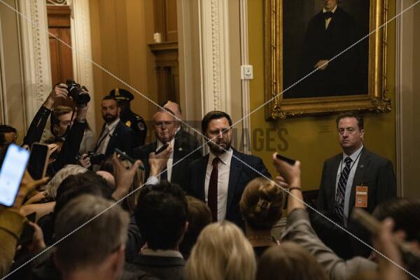 United States Vice President JD Vance departs the US Senate Republican weekly lunch in at US Capitol in Washington, DC, USA, on Tuesday, October 28, 2025. He stopped and talked to the press .