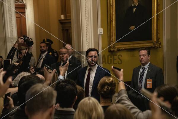 United States Vice President JD Vance departs the US Senate Republican weekly lunch in at US Capitol in Washington, DC, USA, on Tuesday, October 28, 2025. He stopped and talked to the press .