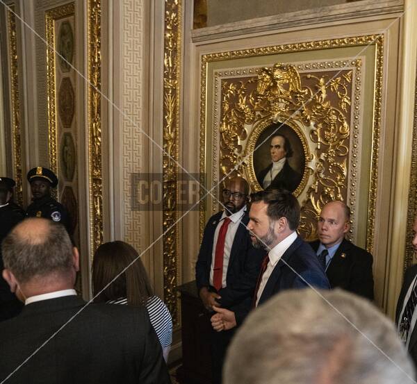 United States Vice President JD Vance walks to the US Senate Republican weekly lunch in at US Capitol in Washington, DC, USA, on Tuesday, October 28