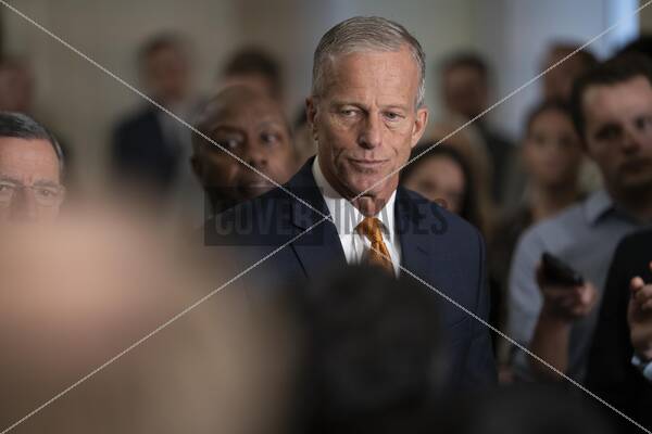 United States Senate Majority Leader John Thune (Republican of South Dakota) speaks to the media after the US Senate Republican weekly luncheon in the Ohio Clock Corridor in the US Capitol in Washington, DC, USA, on Tuesday, October 28, 2025..